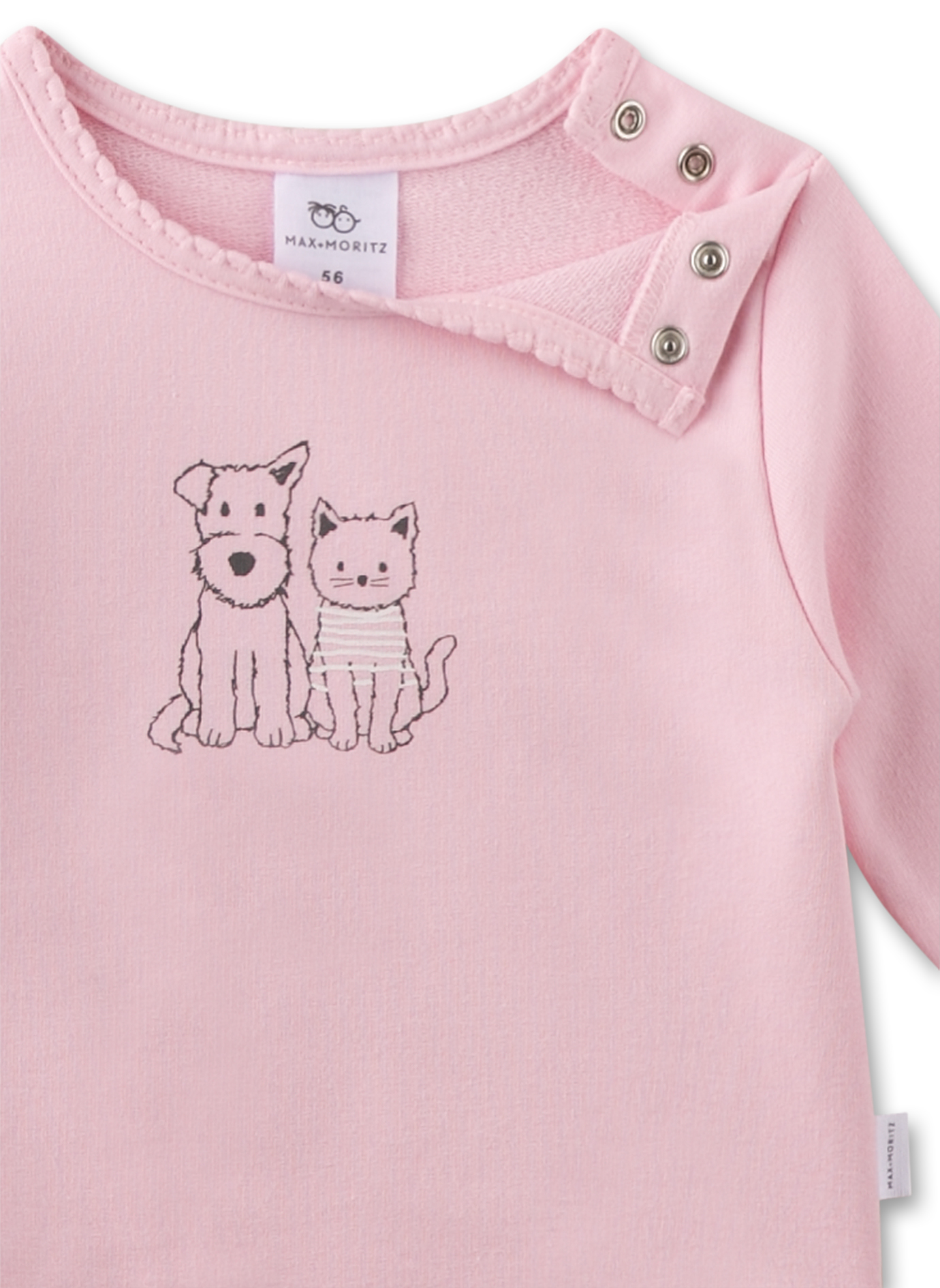 Süßes Baby-Sweatshirt in Rosa von Max & Moritz mi süßem Artwork auf der Brust.