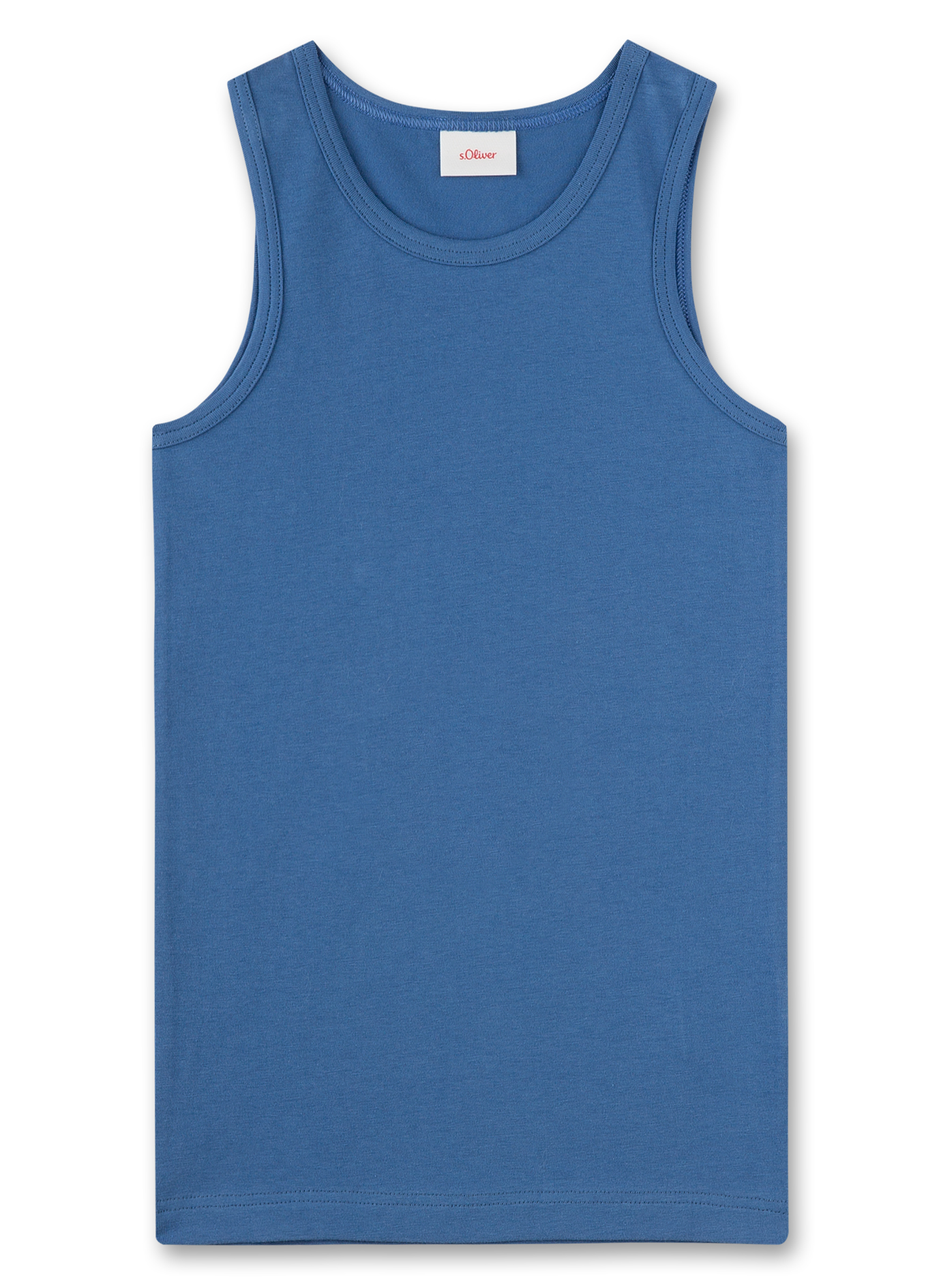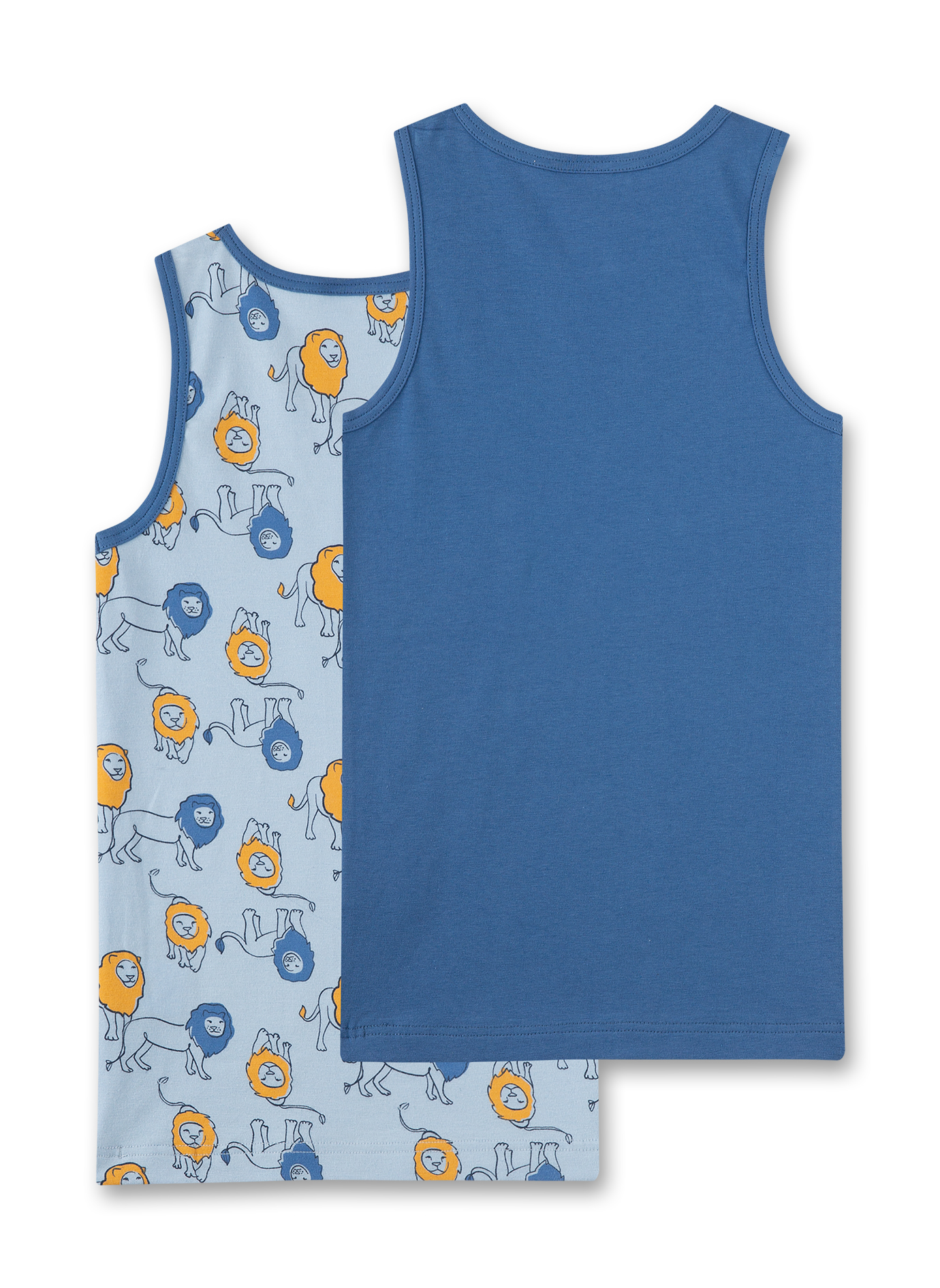 Anschmiegsame Jungen-Unterhemden von s.Oliver im Doppelpack in Blau und in einem knuffigen Löwen-Alloverprint.