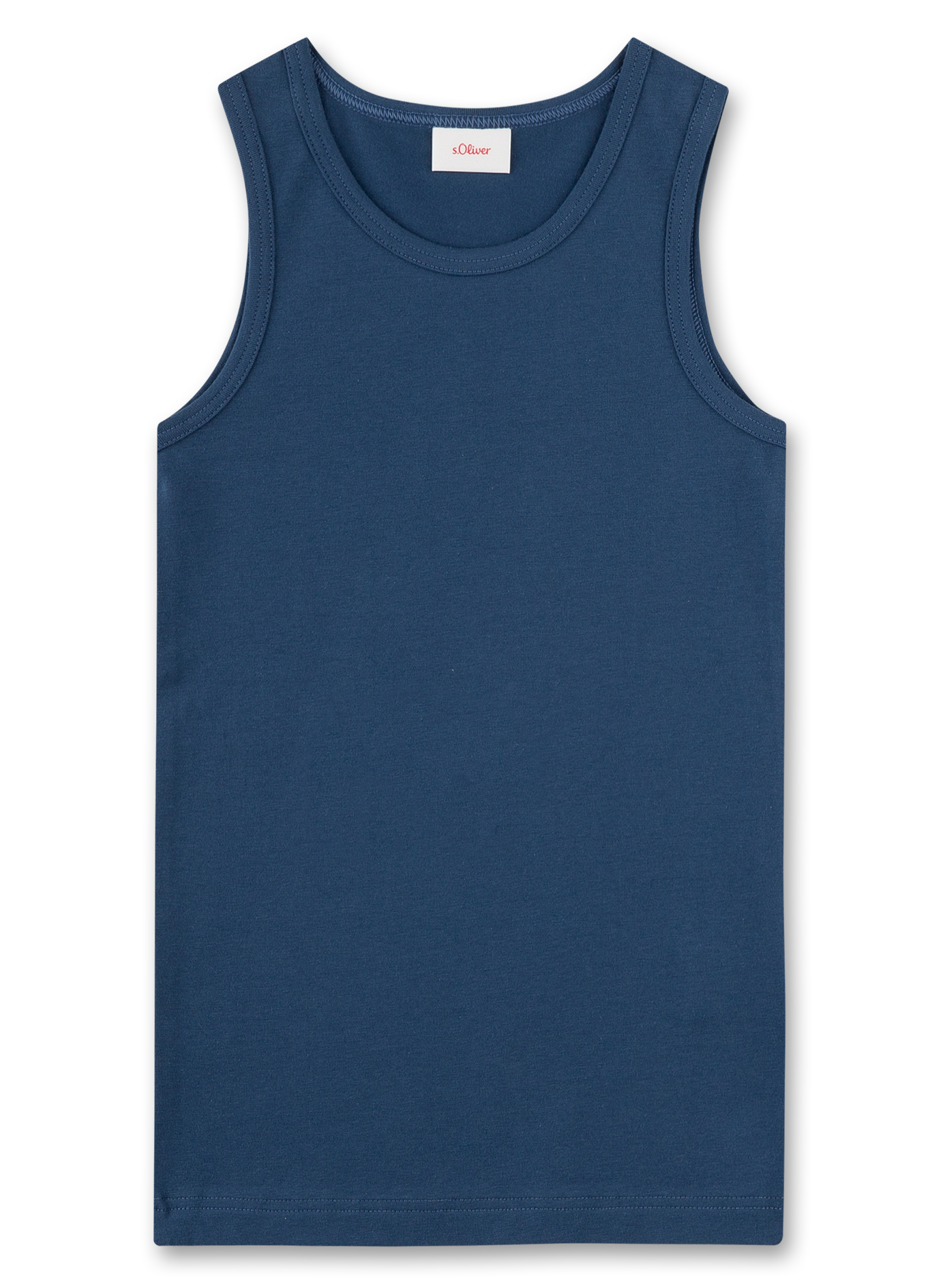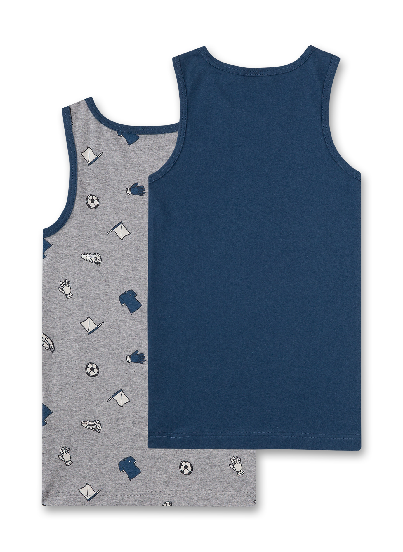 Sprotives Set aus zwei Unterhemden für Jungen von s.Oliver im Fußball-Alloverprint und in Basic-Blau.