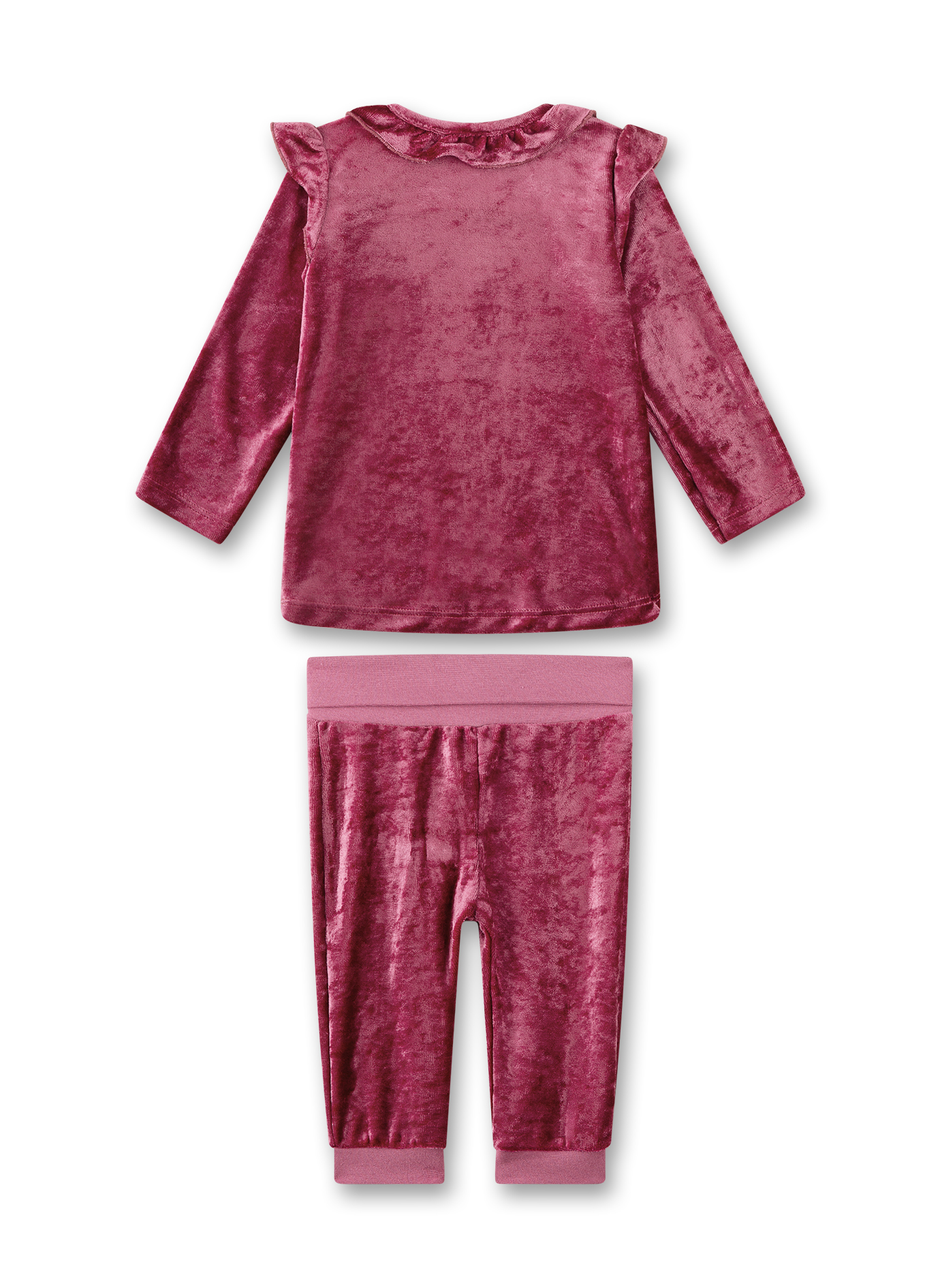 Der niedliche Schlafanzug von Sanetta in kräftigem Beerenton bringt kleine Mädchen zum Strahlen. Aus weich fließender Modal-Qualität gefertigt, schmiegt er sich sanft an die empfindliche Babyhaut und sorgt für ein besonders angenehmes Tragegefühl. Die hochwertige Materialmischung aus 80 % Modal und Polyesteranteil macht den Schlafanzug formstabil, pflegeleicht und angenehm leicht. Das Oberteil mit praktischem Schulterverschluss erleichtert das An- und Ausziehen, während die Hose dank des bequemen Gummibunds optimal sitzt. Verspielte Rüschen verleihen dem Schlafanzug eine romantische Note und machen ihn zu einem liebevoll gestalteten Begleiter für gemütliche Nächte.