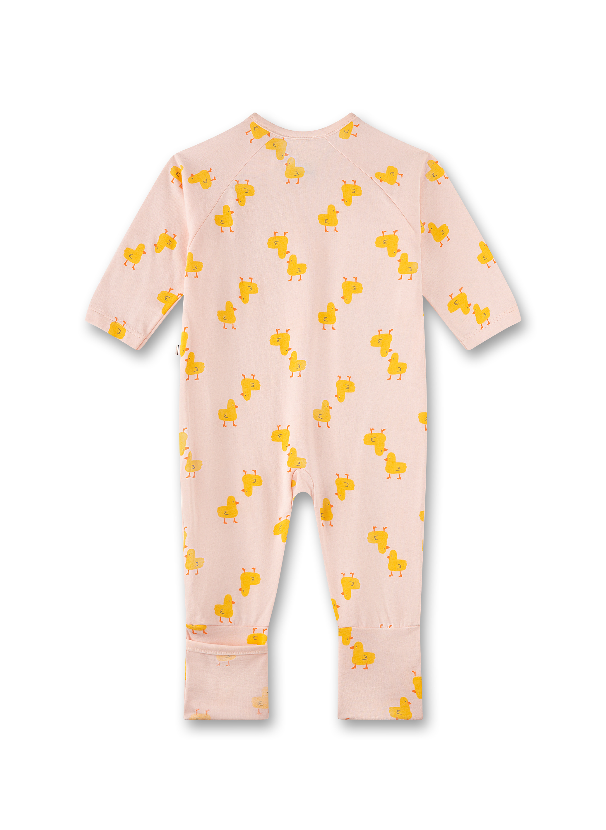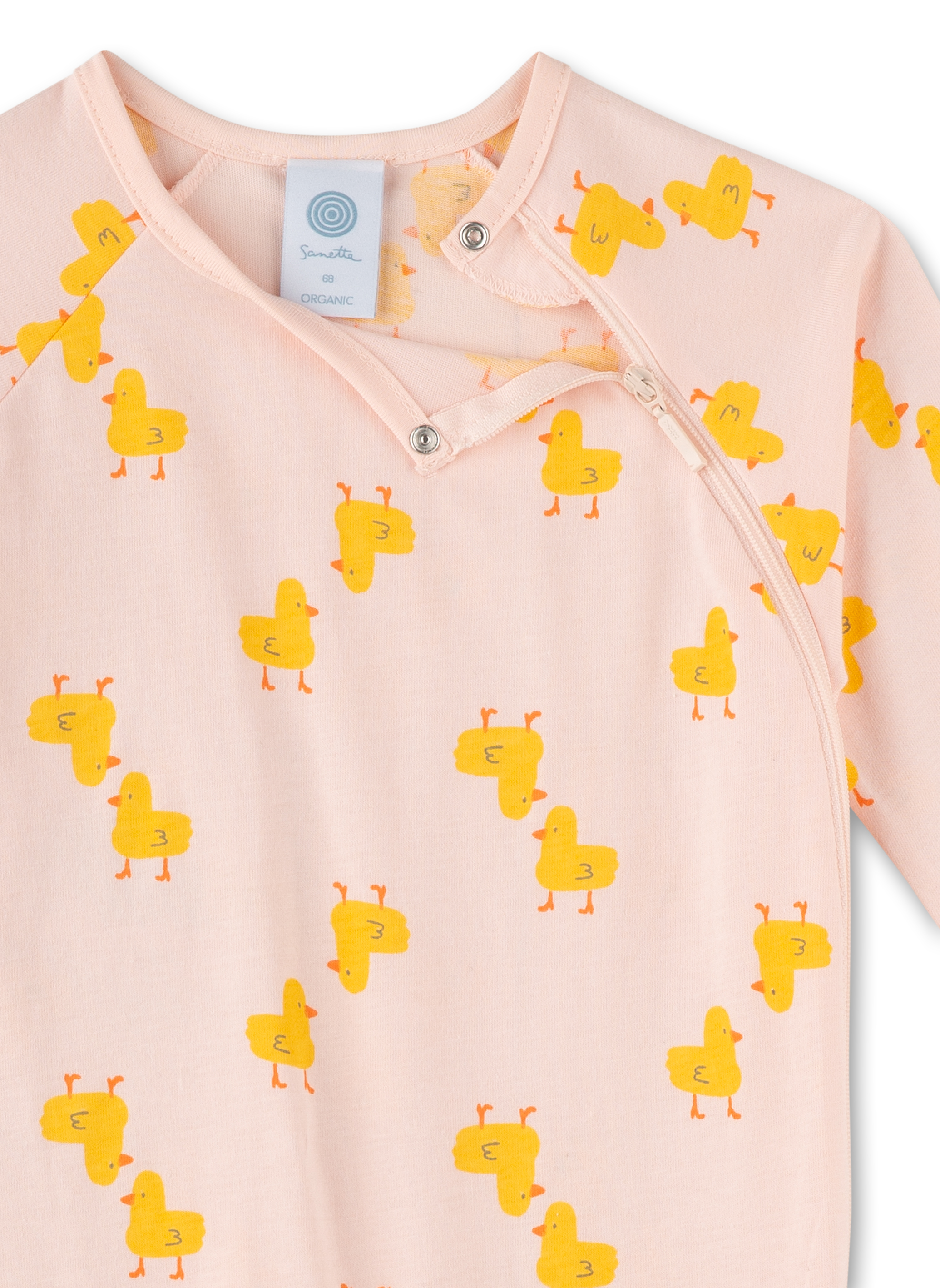 Der bequeme Baby-Strampler aus weicher Single-Jersey-Qualität in zartem Rosé überzeugt mit einem niedlichen Enten-Alloverprint und sorgt für ein angenehmes Tragegefühl. Gefertigt aus 100 % GOTS zertifizierter Bio-Baumwolle ist er besonders hautfreundlich, atmungsaktiv und ideal für den Alltag. Der seitliche Reißverschluss erleichtert das An- und Ausziehen sowie das Wickeln, während der praktische Klappfuß flexible Tragemöglichkeiten bietet – je nach Bedarf mit oder ohne Fuß. Komfortabel und durchdacht gestaltet, begleitet dieser Strampler kleine Lieblinge durch entspannte Tage und ruhige Nächte.