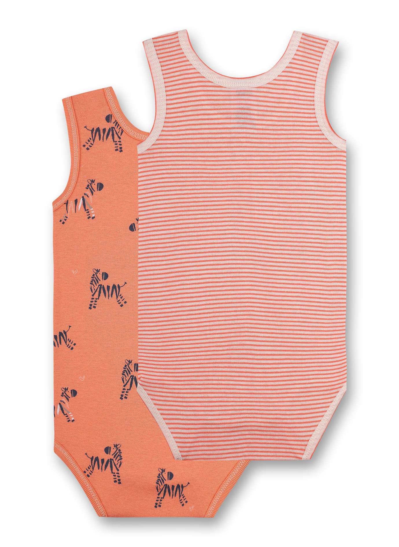 Sommerliches Baby-Body Set bestehend aus zwei hochwertigen Bodys ohne Ärmel mit Zebra Artworks und im hübschen Ringel-Design.