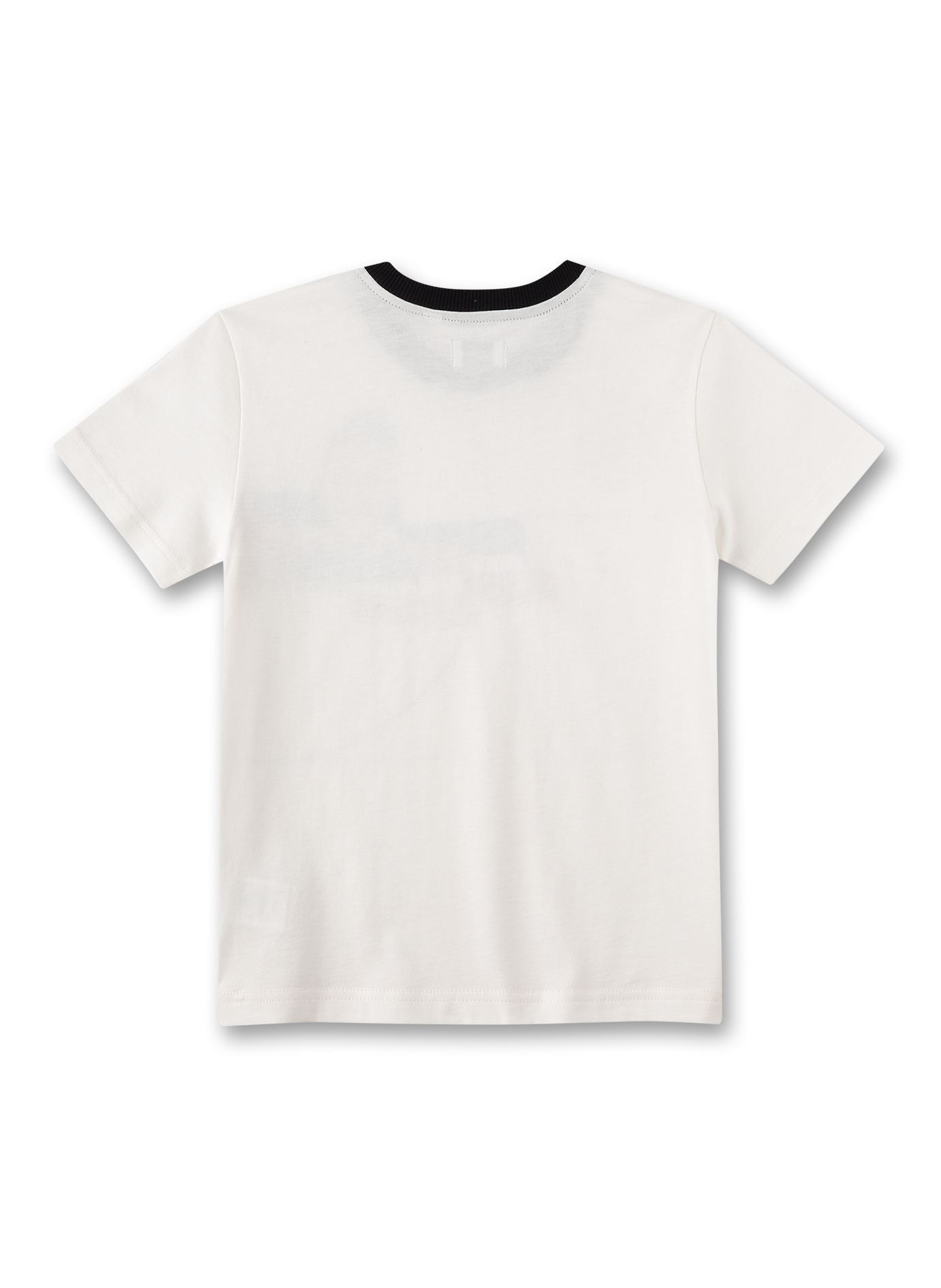- mit elastischem schwarzem Rippbündchen am Rundhalsausschnitt