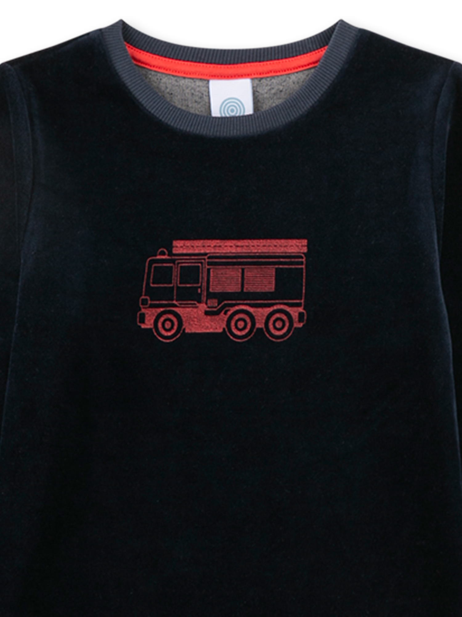 - Langärmliges Oberteil in Schwarz mit kleinem roten Feuerwehrauto