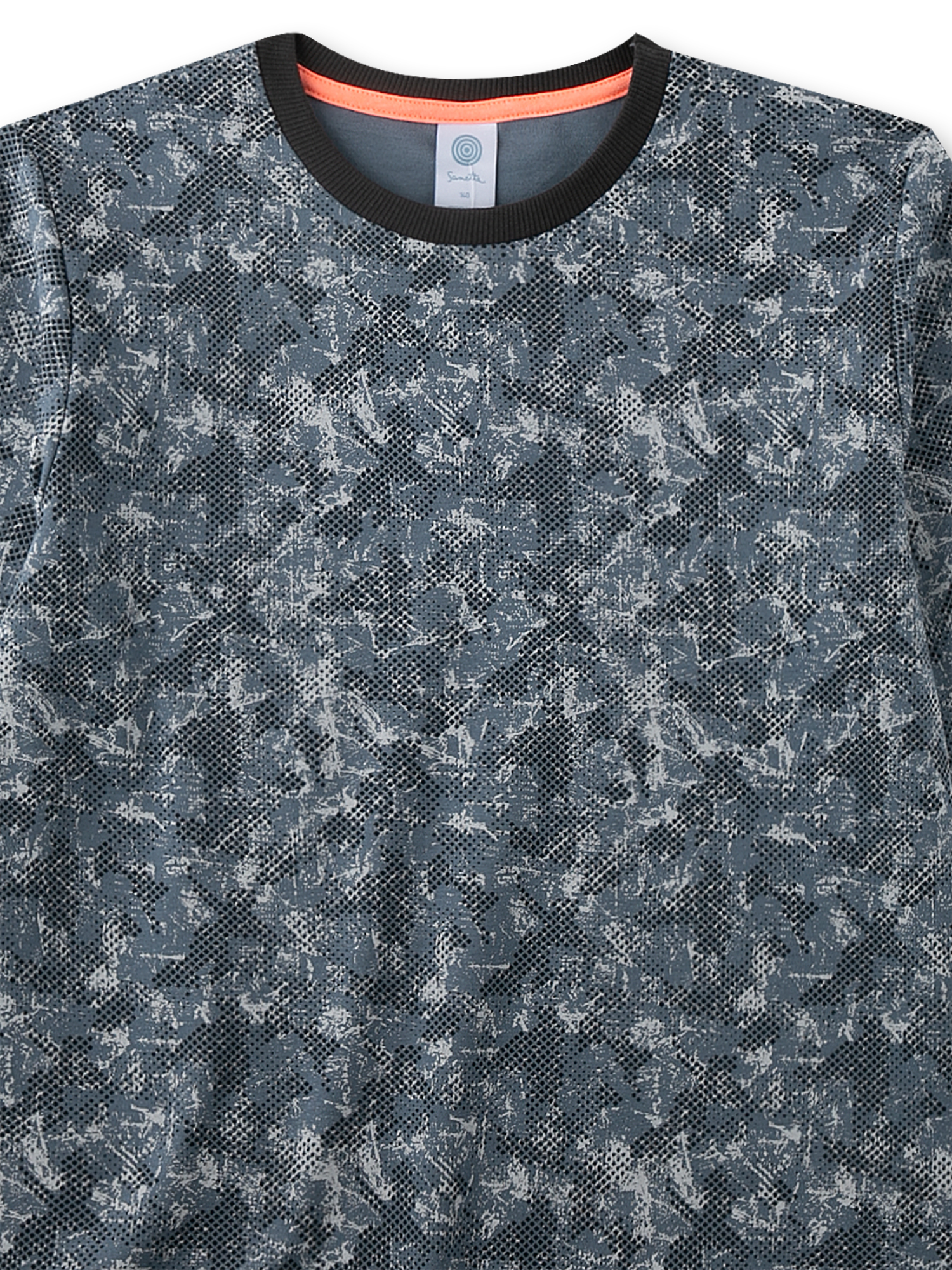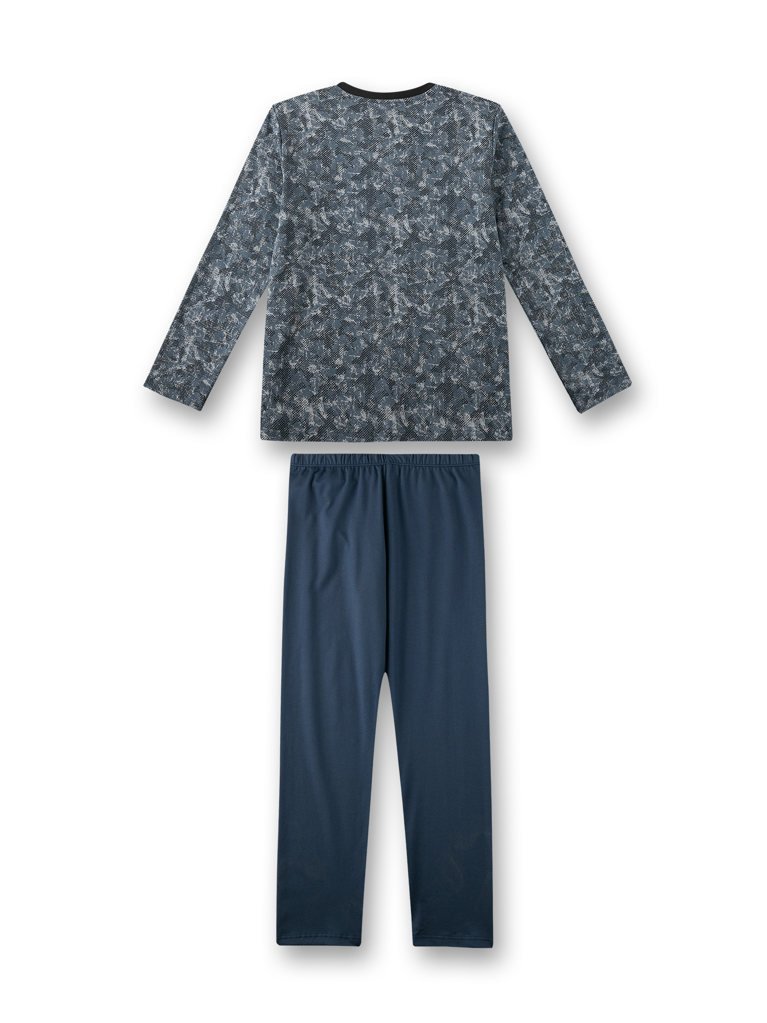 Der bequeme Jungen-Schlafanzug von Sanetta überzeugt mit einem aufregenden Musterprint auf dem Langarmshirt und sorgt für angenehme Nächte. Gefertigt aus weicher Single-Jersey-Qualität aus 100 % Bio-Baumwolle bietet das Set ein besonders hautfreundliches und atmungsaktives Tragegefühl. Das Langarmshirt mit Rundhalsausschnitt und weichem Nackenband sorgt für zusätzlichen Komfort und ein angenehmes Hautgefühl. Die passende Schlafhose in Dunkelblau ist mit einem flexiblen Taillenbund ausgestattet und garantiert eine bequeme Passform sowie optimale Bewegungsfreiheit. Ein praktisches und komfortables Set für erholsame Nächte.