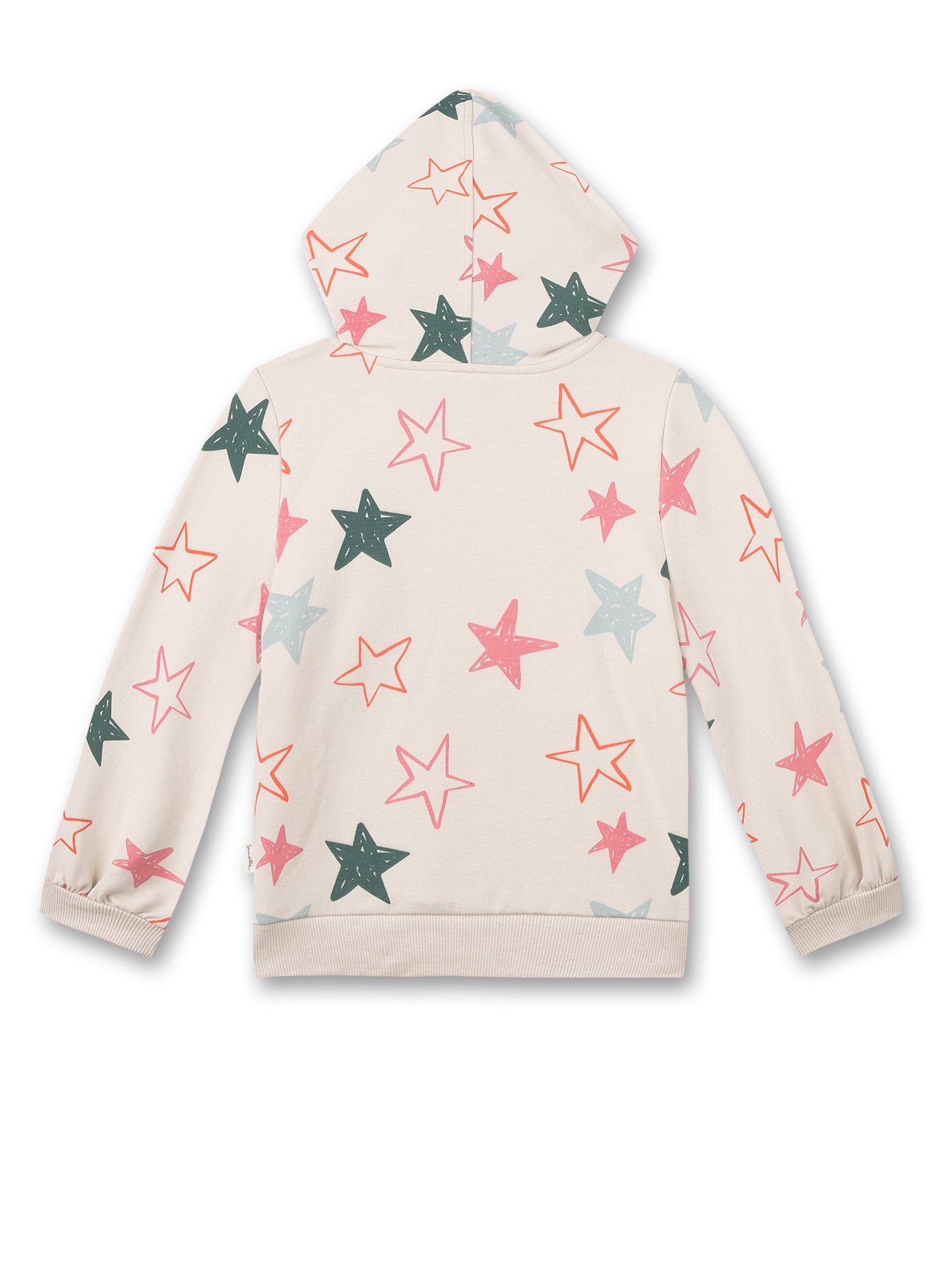 Mädchen-Kapuzensweatshirt in Beige von Sanetta Kidswear im bunten Sternchen-Alloverprint.