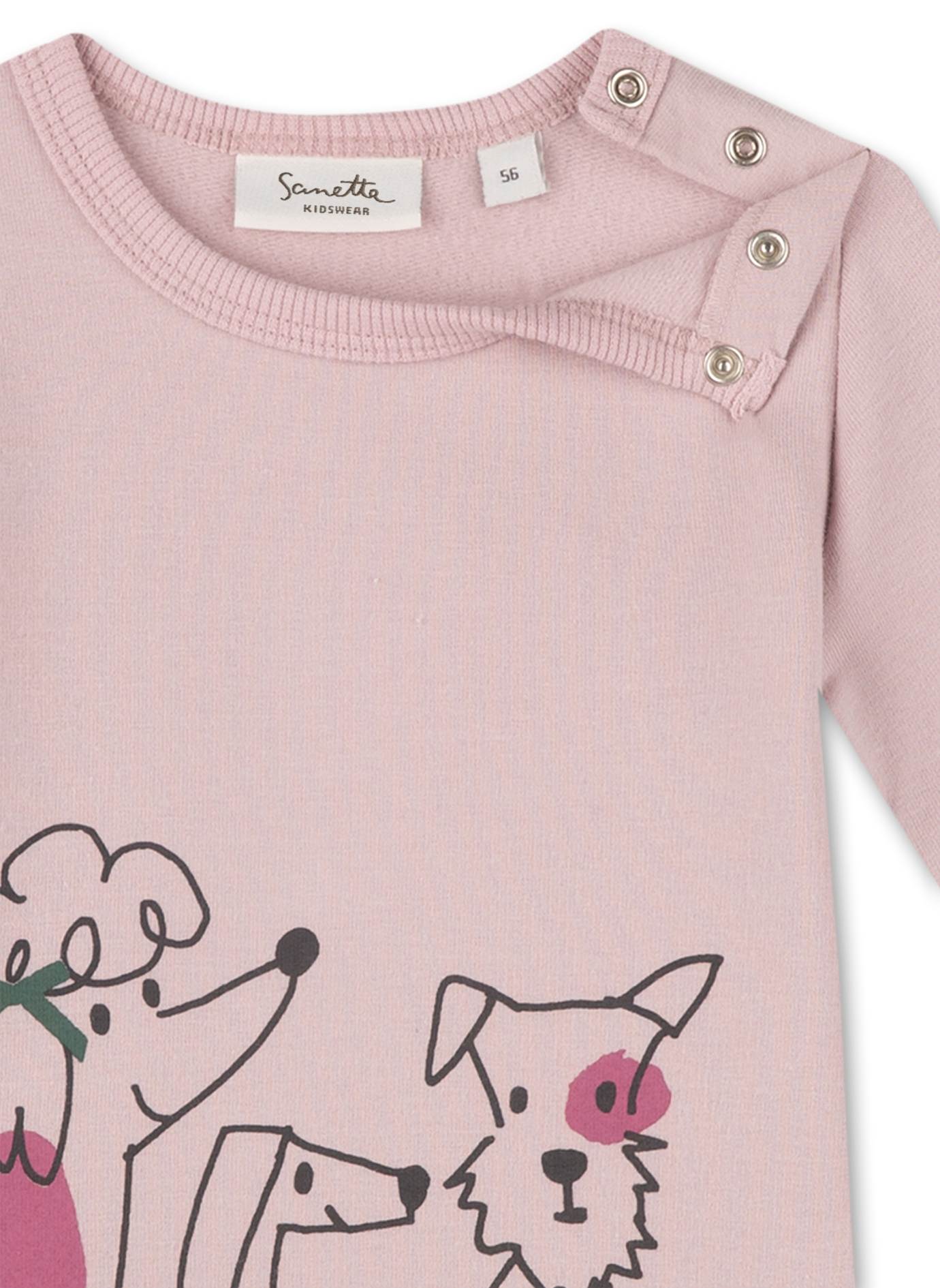 Mädchen-Sweatshirt von Sanetta Kidswear in Rosa mit süßen Hunde-Artworks.