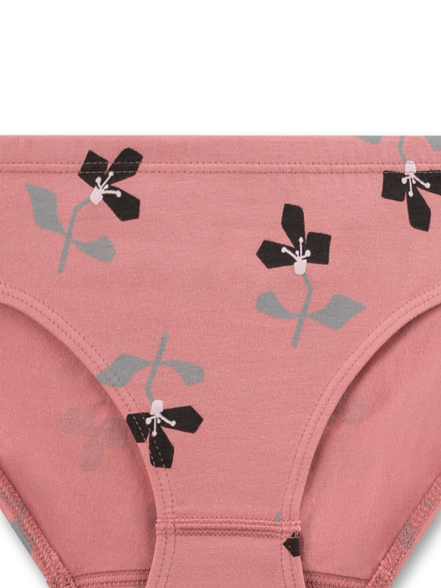 Der rosa Mädchen-Slip von Sanetta überzeugt mit einem abstrakten Blumen-Muster in hochwertiger Verarbeitung. Die elastische Single-Jersey-Qualität aus 95 % Baumwolle und 5 % Elasthan sorgt für ein anschmiegsames und bequemes Tragegefühl. Der flexible Taillenbund mit Gummizug garantiert eine optimale Passform, ohne einzuschneiden. Mit seinem hohen Beinausschnitt bietet der Slip zusätzlichen Komfort. Das abstrakte Allover-Design in Schwarz und Grün erinnert an stilisierte Stiefmütterchen. Passender BH und Unterhemd sind in der Kollektion erhältlich.