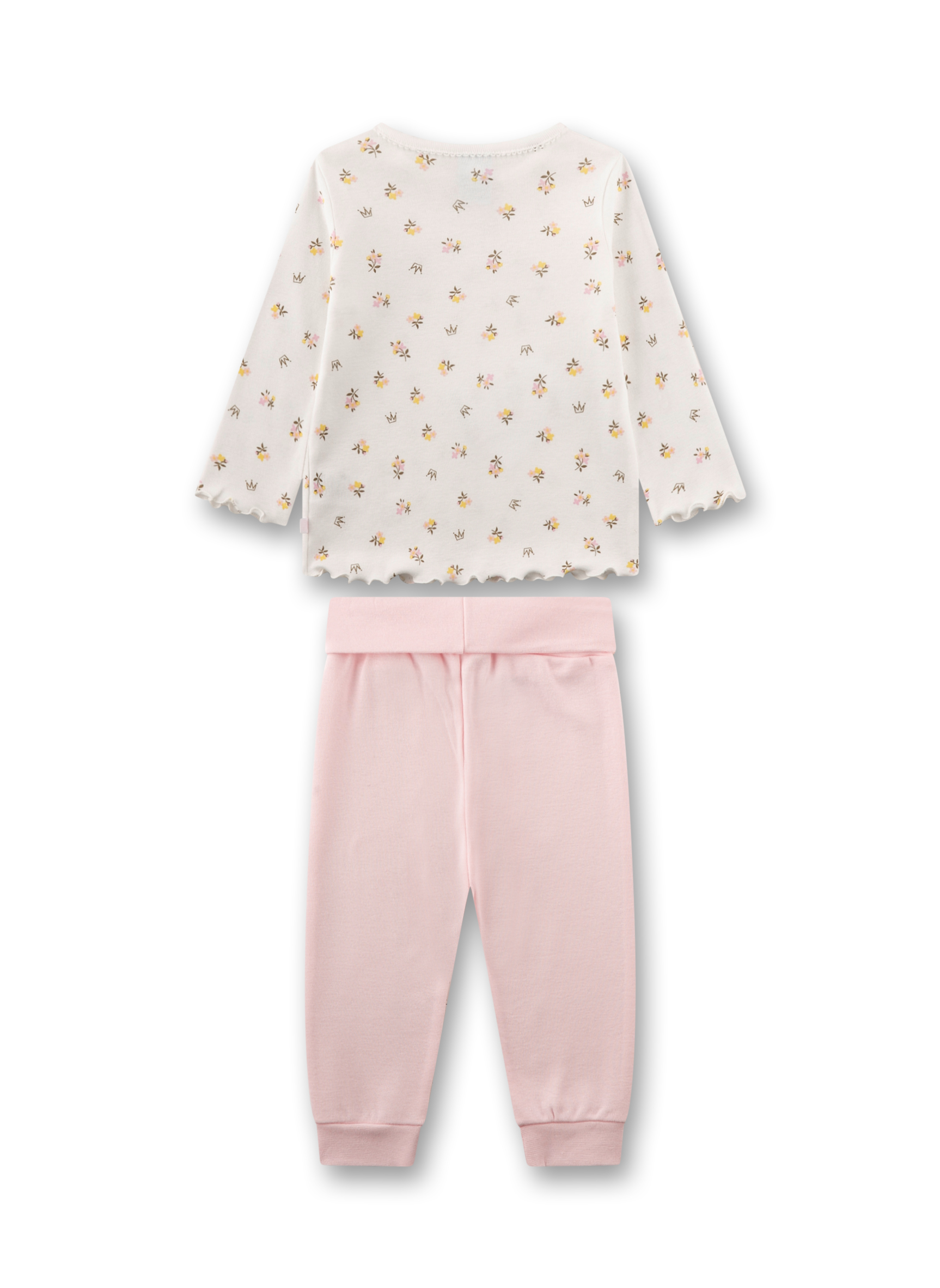 Dieser entzückende Mädchen-Schlafanzug von Sanetta aus 100 % GOTS-zertifizierter Bio-Baumwolle in weichem Feinripp sorgt für kuschelige Stunden und maximalen Tragekomfort. Das Off-white-Oberteil ist mit zarten Blumen und kleinen Kronen bedruckt und mit welligen Abschlüssen an Ärmeln und Saum sowie einer niedlichen pinken Schleife am Rundhalsausschnitt verziert. Die passende Hose in Rosa überzeugt mit einem elastischen Umschlagbund und weichen Beinabschlüssen, die für perfekten Sitz und Bewegungsfreiheit sorgen. Praktische Druckknöpfe an der Schulter erleichtern das An- und Ausziehen. Weich, hautfreundlich, pflegeleicht und trocknergeeignet.
