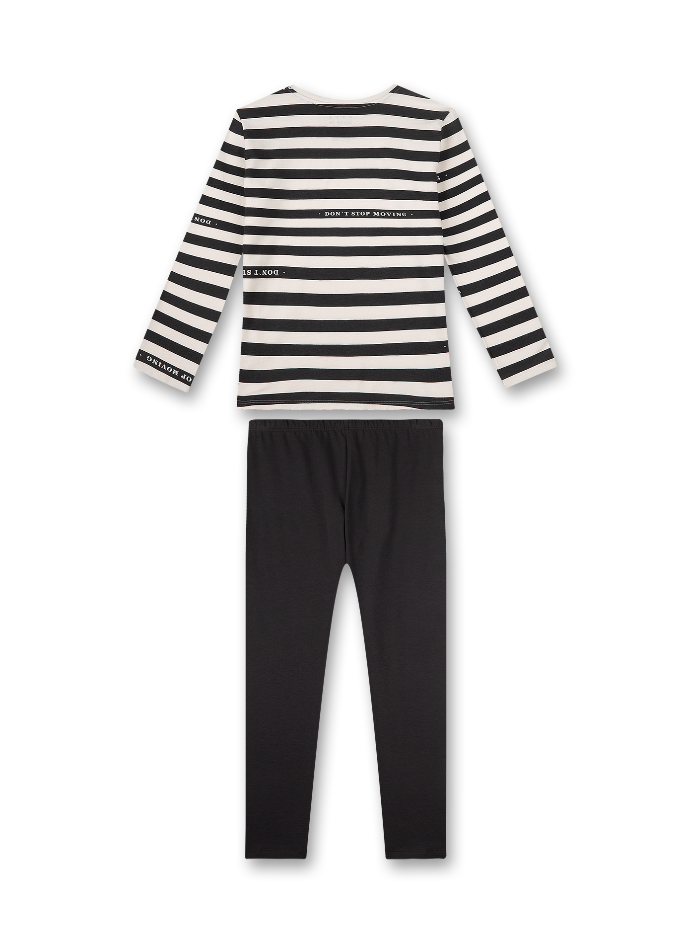 Klassischer Mädchen Schlafanzug von Sanetta mit einem Oberteil im Block-Ringel Design mit Wordingprint.