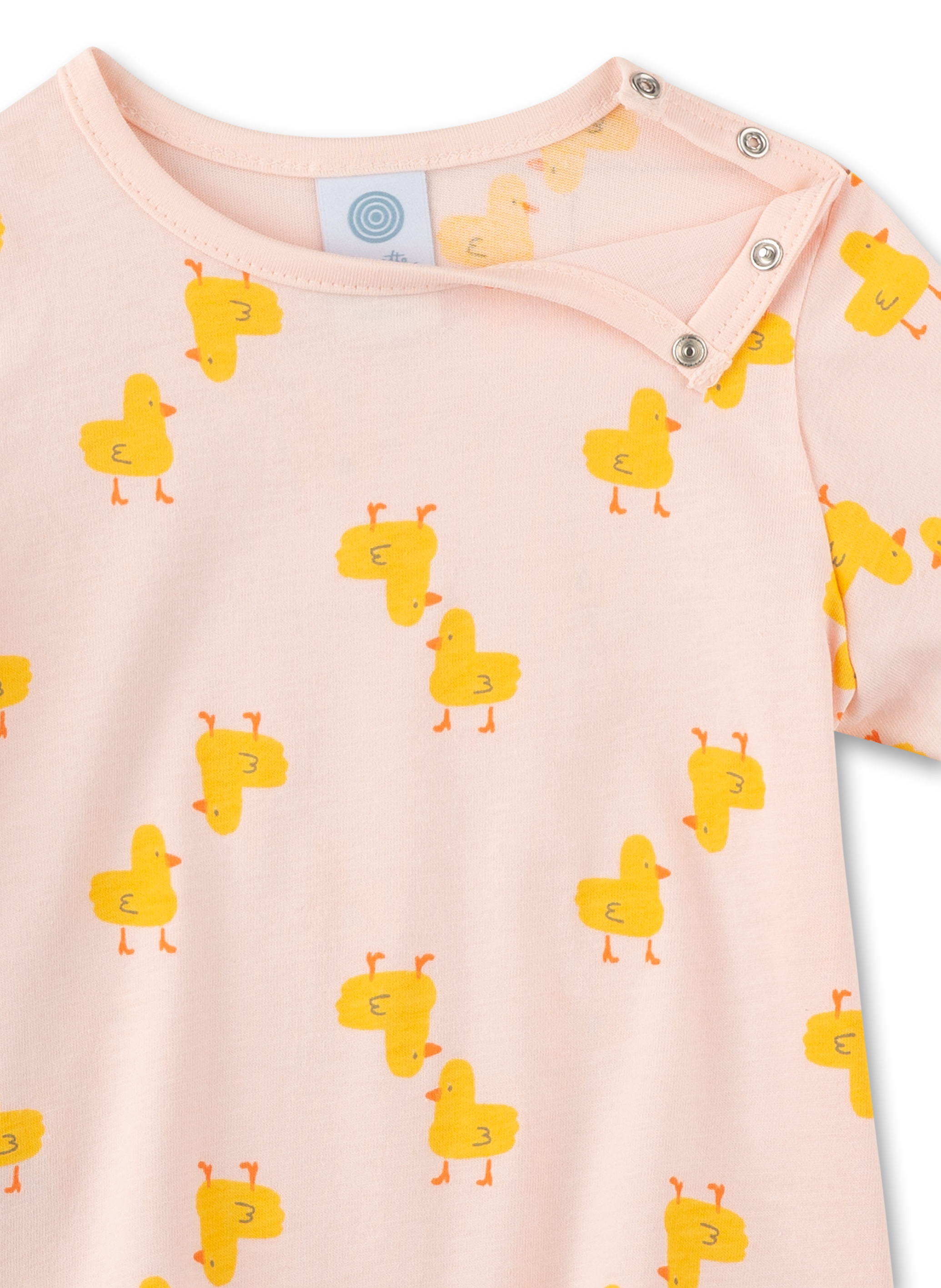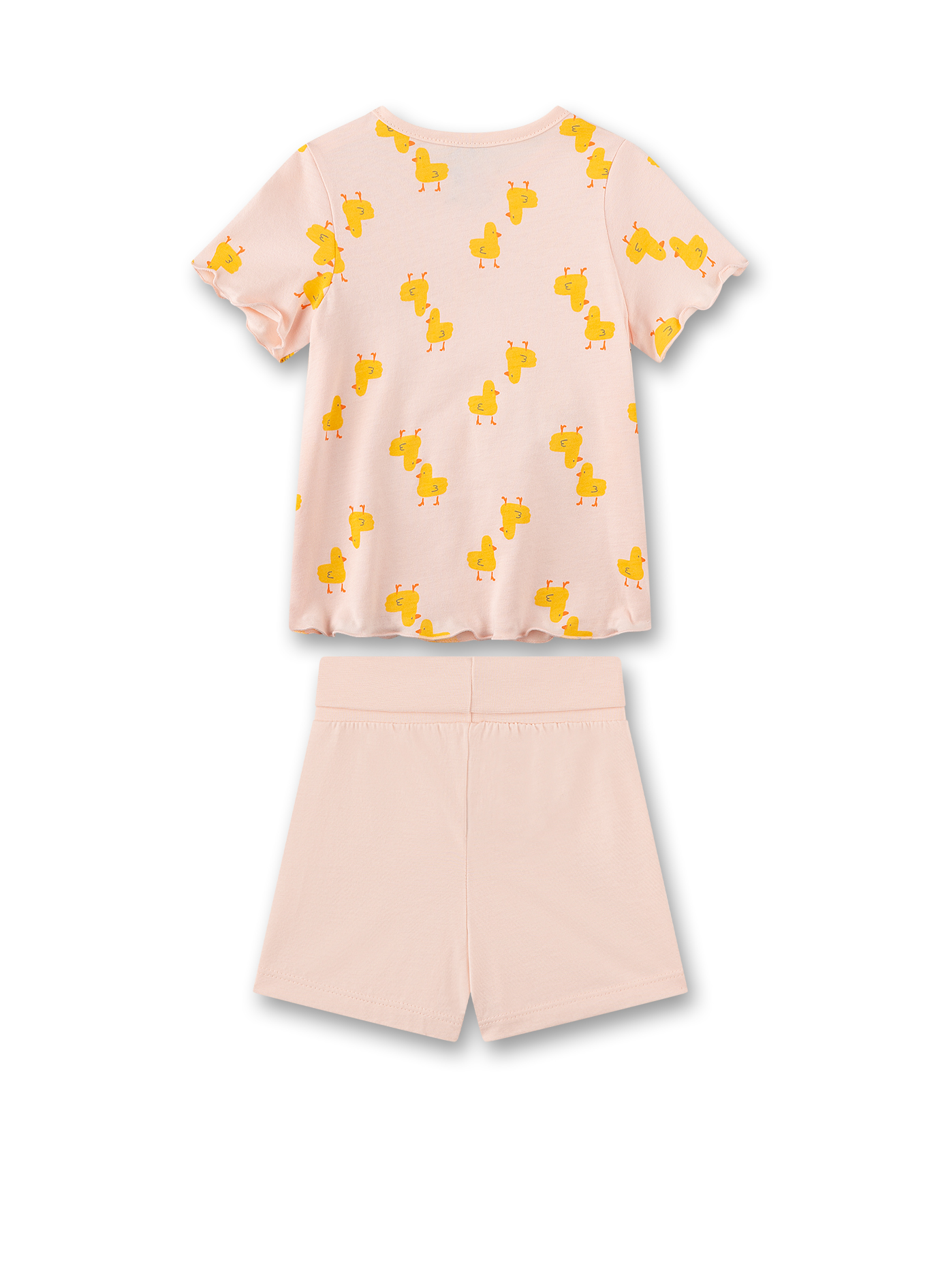 Herziger kurzer Mädchen-Schlafanzug mit süßen Entchen-Alloverprint von Sanetta.