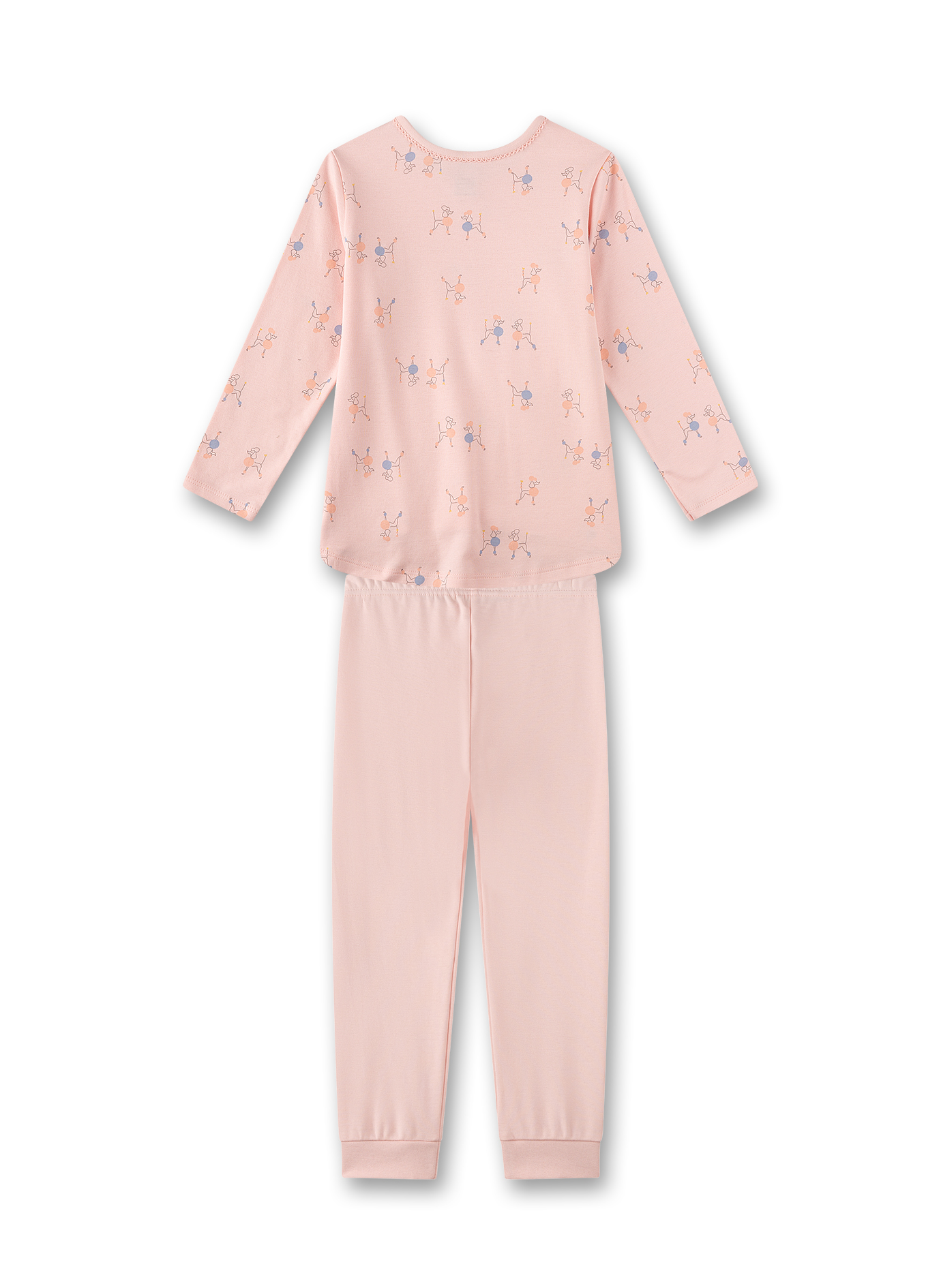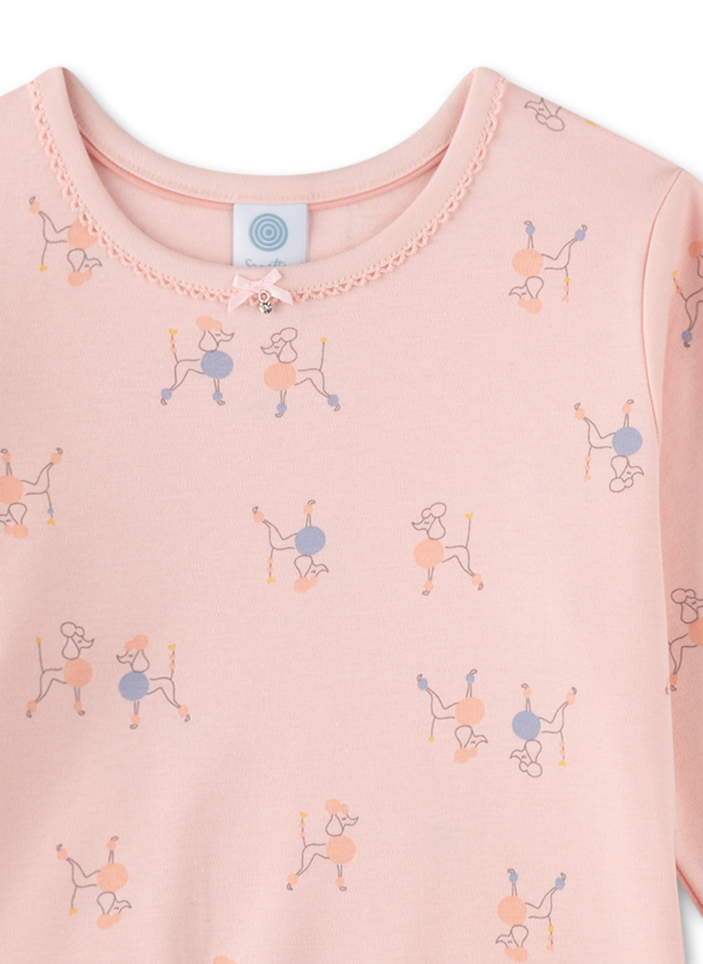 Langer Schlafanzug für Mädchen von Sanetta in Rosa mit einem süßen Pudel-Alloverprint.