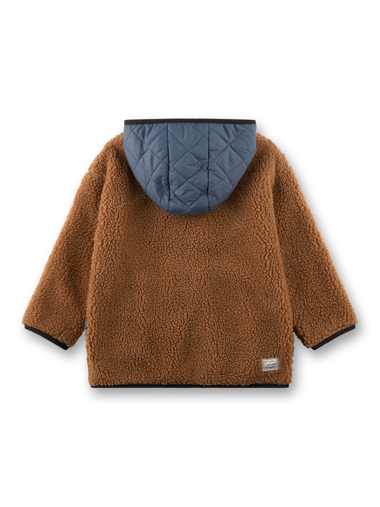 Die trendige Fleecejacke für Jungen von Sanetta Pure begeistert mit ihrer kuschelig warmen Teddy-Qualität in einem wunderschönen Braunton und ist die perfekte Alltagsjacke für kühlere Tage. Gefertigt aus hochwertigem, weichem Polyester sorgt die Jacke für angenehmen Tragekomfort und hält zuverlässig warm. Der praktische Reißverschluss ist in olivgrünem Stoff eingefasst und endet in einer schützenden Zippergarage, die Reibung am Hals vermeidet. Kontrastfarbene Details in Blau an den seitlichen Eingriffstaschen und der Kapuze in modischer Steppoptik setzen coole Akzente. Diese Jacke ist nicht nur funktional, sondern auch ein echtes Style-Highlight.