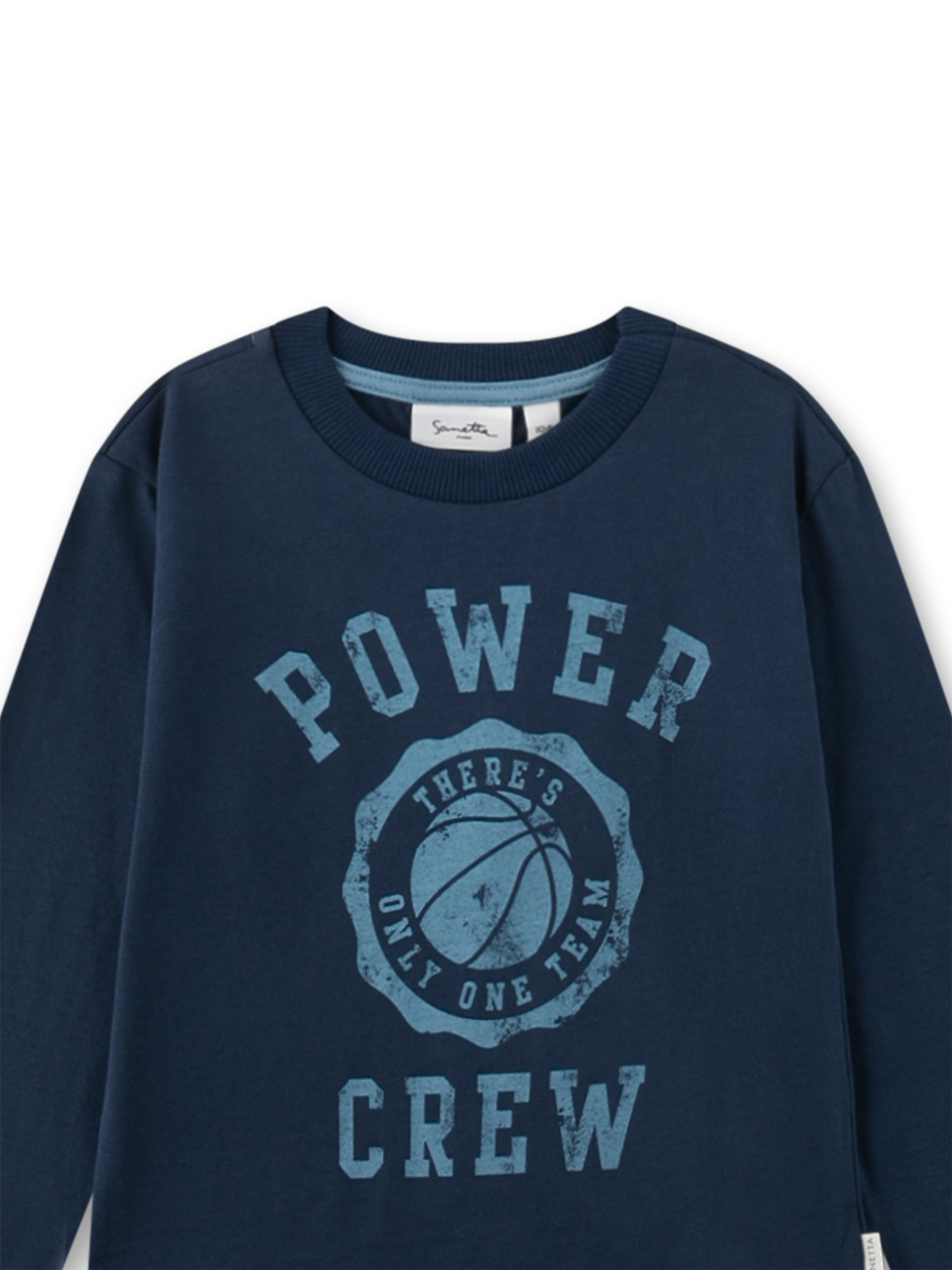 Das sportliche Jungen-Langarmshirt von Sanetta Pure bringt Farbe und Teamgeist in jeden Tag. Aus weicher Single Light Velours-Qualität (100%Bio-Baumwolle, GOTS-zertifiziert) gefertigt, ist es besonders hautfreundlich und nachhaltig. Der Rundhalsausschnitt mit elastischem Rippmaterial sorgt für eine bequeme Passform, während das leuchtend gelbe Design sofort ins Auge fällt. Mittig prangt ein cooles Basketball-Motiv, umgeben von den Schriftzügen "There´s Only One Team" und "Power Crew". Ein perfektes Basic für kleine Basketballfans und aktive Entdecker.