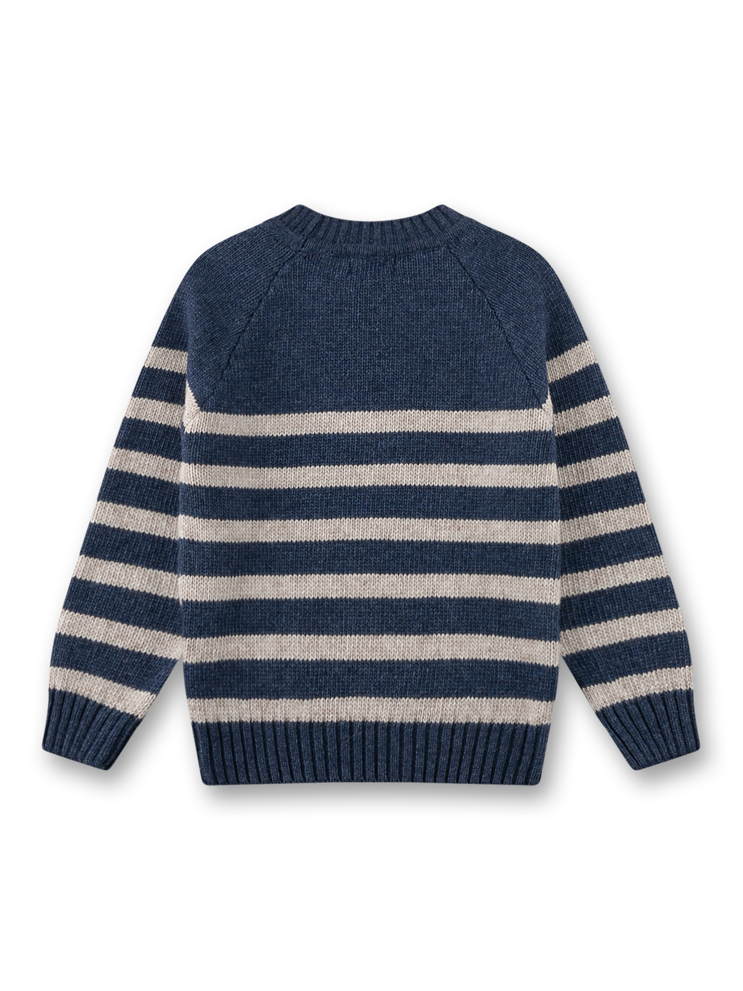 Dieser gemütliche Jungen-Strickpullover von Sanetta Pure kombiniert maritimen Stil mit hohem Tragekomfort. Gefertigt aus einer hochwertigen Materialmischung mit 40 % Polyamid, 30 % Wolle und 30 % Viskose, bietet er eine angenehme Wärme und weiche Haptik. Der Pullover in Blau mit weißen Streifen verfügt über einen Rundhalsausschnitt sowie elastische Rippabschlüsse an Saum und Ärmeln. In den Babygrößen ist der Pullover mit drei braunen Knöpfen ausgestattet, die sich schräg entlang der linken Schulter bis zum Kragen erstrecken, um das An- und Ausziehen zu erleichtern. Kindergrößen kommen ohne Knöpfe aus. Ein stilvolles und bequemes Kleidungsstück für jede Jahreszeit!