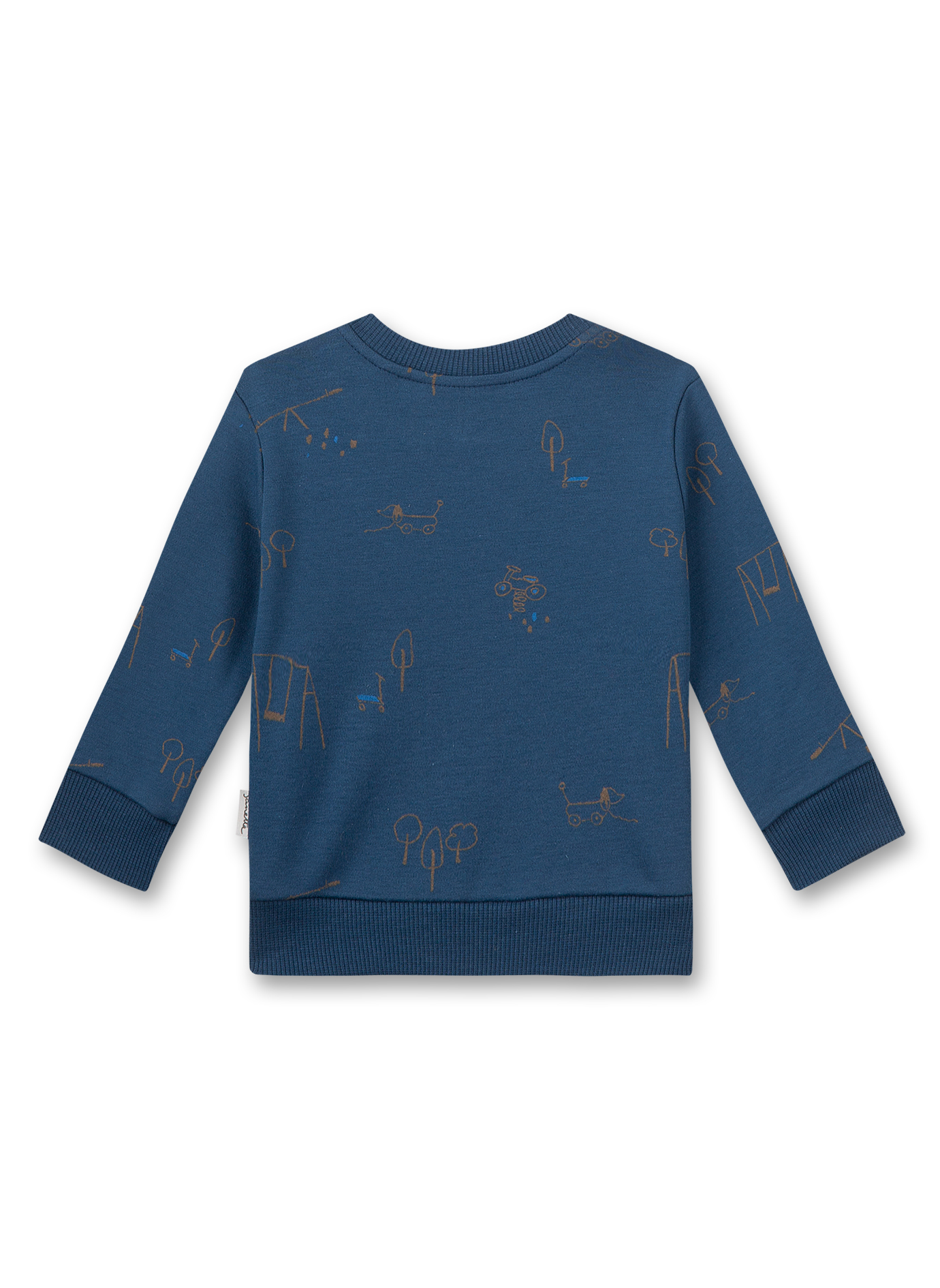 Jungen-Sweatshirt in Dunkelblau von Sanetta Pure mit einem liebevollen Spielplatz-Alloverprint aus nachhaltiger Bio-Baumwolle.