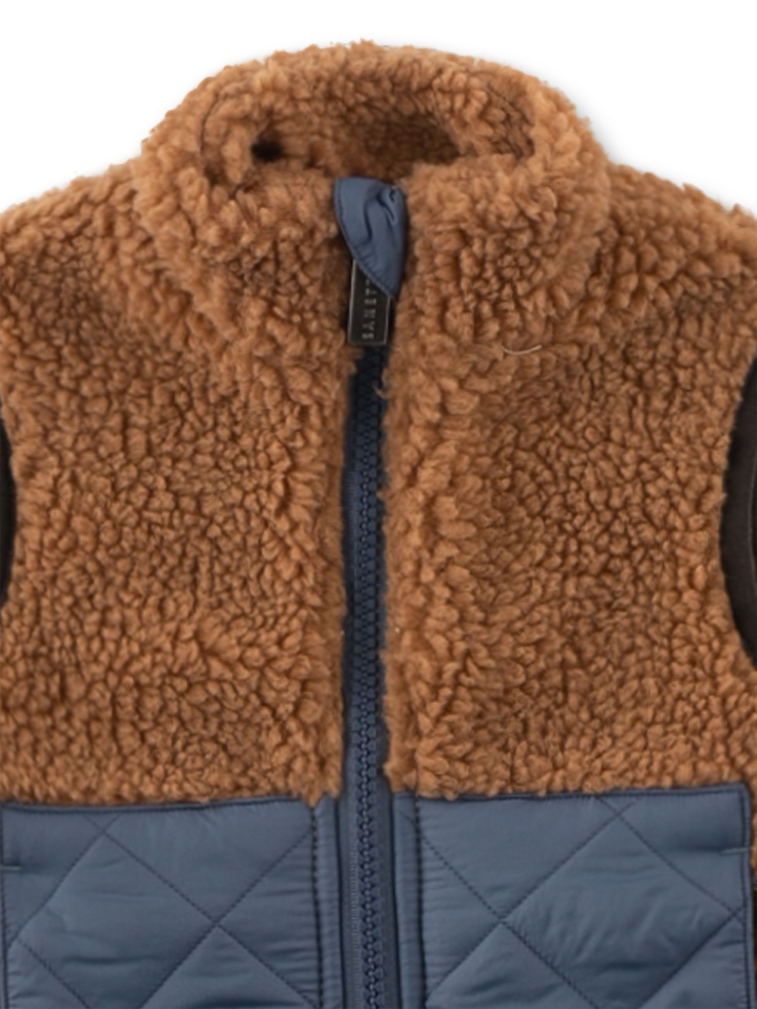 Diese gemütliche, ärmellose Teddy-Plüsch-Weste für Jungen von Sanetta Pure ist ein perfekter Begleiter für die Übergangszeit. Gefertigt aus weichem Teddy-Plüsch in einem angesagten Braunton sorgt sie für angenehme Wärme, während das gleichfarbige Innenfutter aus Single-Jersey zusätzlichen Komfort bietet. Die aufgesetzten Fronttaschen aus blauem Steppstoff setzen modische Akzente und bieten Platz für kleine Schätze. Ein praktischer Reißverschluss mit Zippergarage erleichtert das An- und Ausziehen und schützt zugleich den Halsbereich. Der leichte Stehkragen und die legere Passform verleihen der Weste einen lässigen Look. Ein kleines Wording-Label mit der Botschaft ONE EARTH, ONE FAMILY, ONE PLANET rundet das Design liebevoll ab.