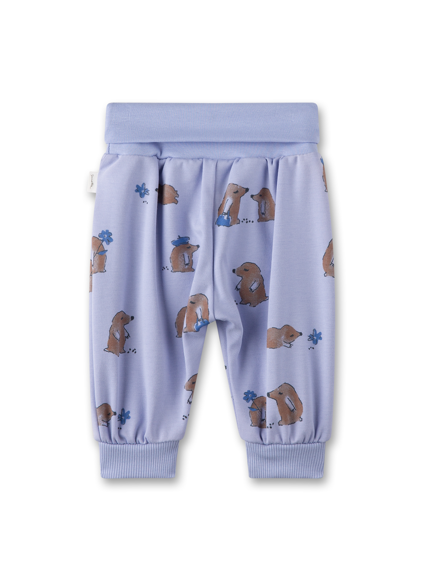 Bequeme Baby-Hose für Mädchen mit einem entzückenden Maulwurf-Allover in Hellblau von Sanetta Pure.