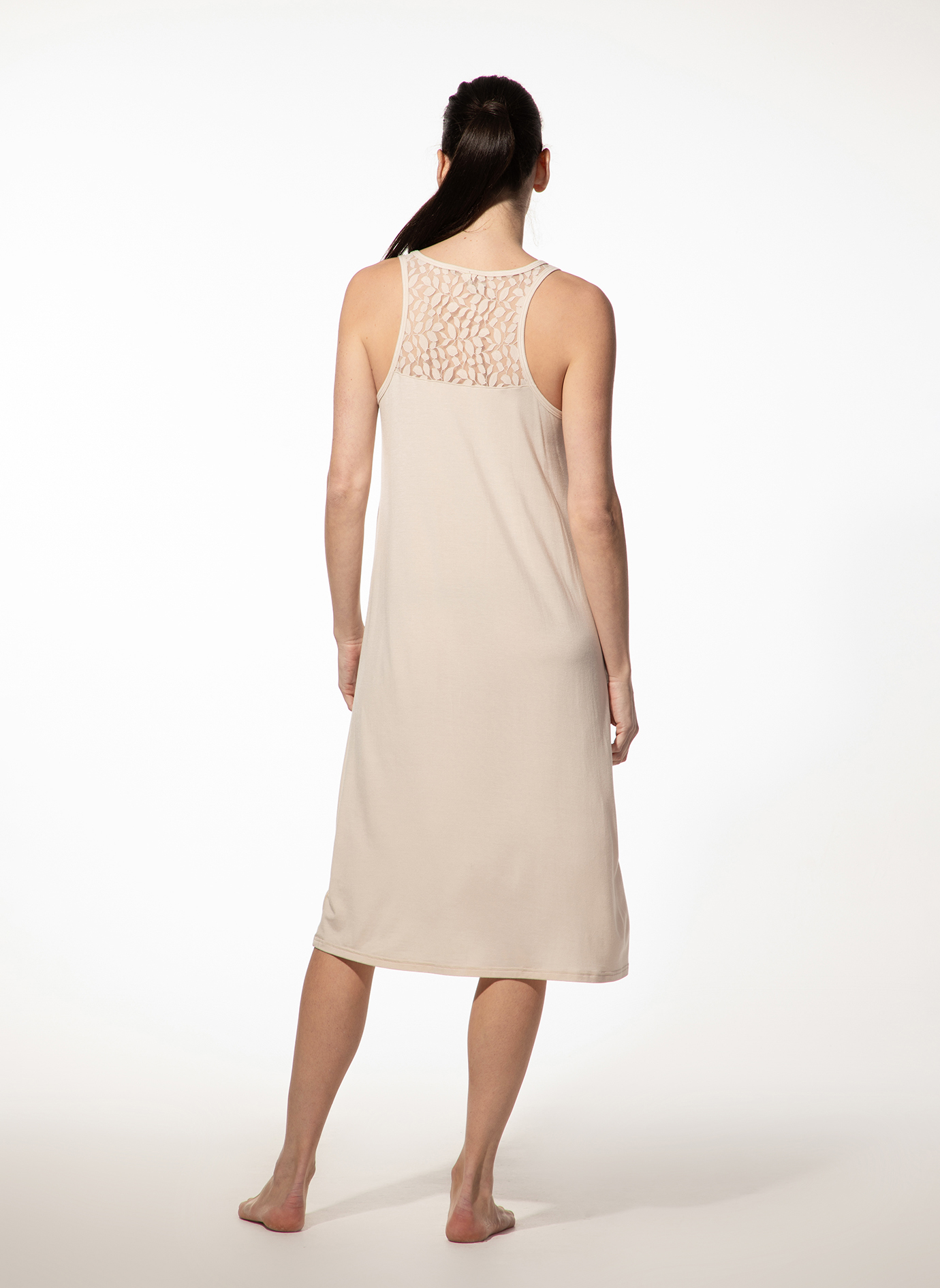 Träume stilvoll und bequem mit diesem Damen-Nachthemd von SHORT STORIES aus elastischem Single-Jersey aus Baumwolle und Modal. Das weiche, fließende Material in zartem Nude-Ton schmiegt sich sanft an die Haut und sorgt für ein leichtes, angenehmes Tragegefühl. Feine Spitzendetails an den Trägern und am Rücken verleihen dem Shirt feminine Raffinesse und setzen elegante Akzente - ein echter Hingucker im Schlafzimmer. Dank der hochwertigen Verarbeitung bietet es Komfort und Bewegungsfreiheit für entspannte Nächte und gemütliche Stunden zu Hause. Dieses Schlafshirt vereint Stil, Leichtigkeit und Wohlbefinden auf perfekte Weise und ist ein Must-Have für anspruchsvolle Damen.